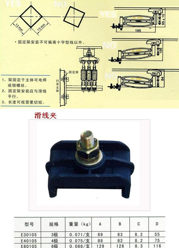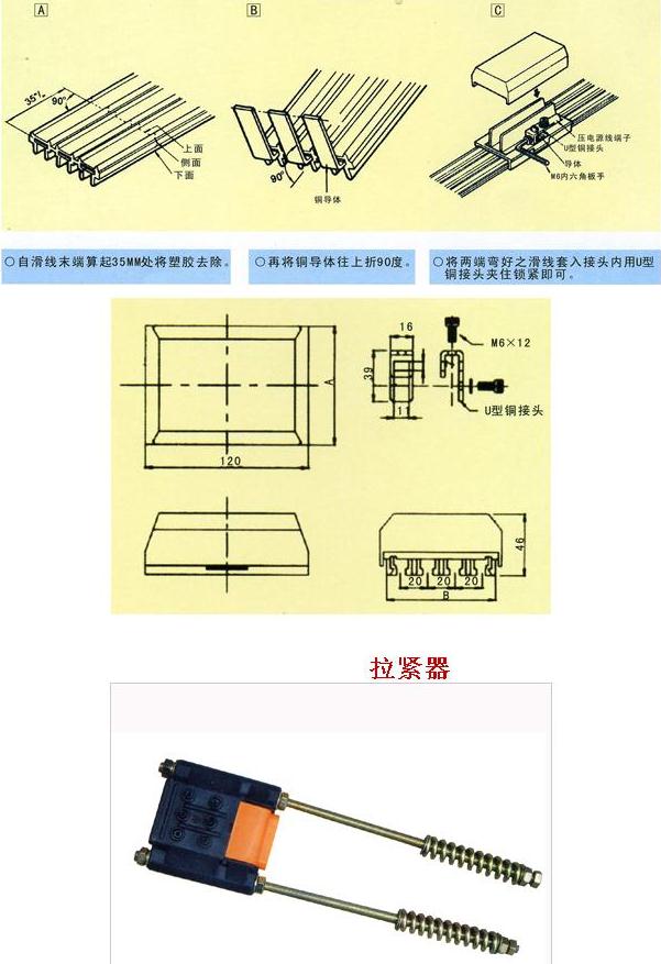 柔性一體式滑觸線是以無氧銅(導(dǎo)電率達(dá)99.99%)輸送電源、銅導(dǎo)體之厚度厚(一般標(biāo)準(zhǔn)厚為2.8m/m×10W)、壓降小、導(dǎo)電率倍佳;可根據(jù)用戶的車間長度或用戶的需求來配一條以之相同長度的安全電軌,使整個(gè)車間安全配電中間沒有任何接口,真正解決了國產(chǎn)滑觸線因接口多經(jīng)??ㄗ〖娝⒍斐啥搪坊虿荒苓\(yùn)行的問題。并且適用于曲線、弧形及高低行走的設(shè)計(jì),并且安裝簡便。從而使整套天車工程美觀、整潔又安全。產(chǎn)品有3P、