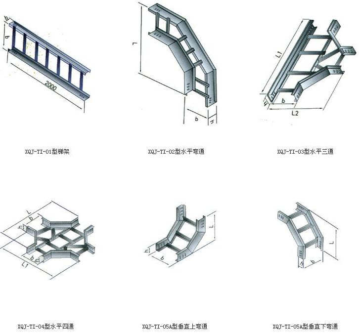 梯級(jí)式電纜橋架備有護(hù)罩,需要配護(hù)罩時(shí)可在訂貨時(shí)注明,其所有配件與托盤式、槽式橋架通用。